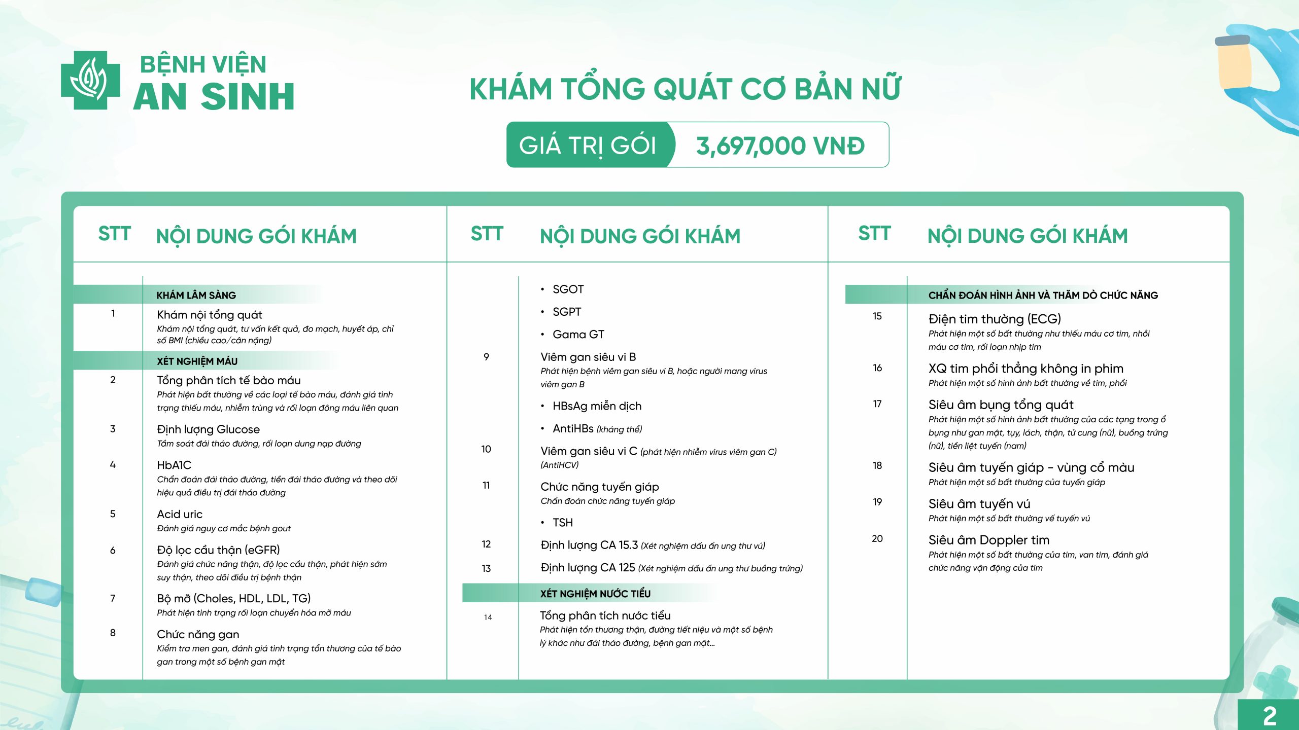 GÓI KHÁM TỔNG QUÁT CƠ BẢN NỮ