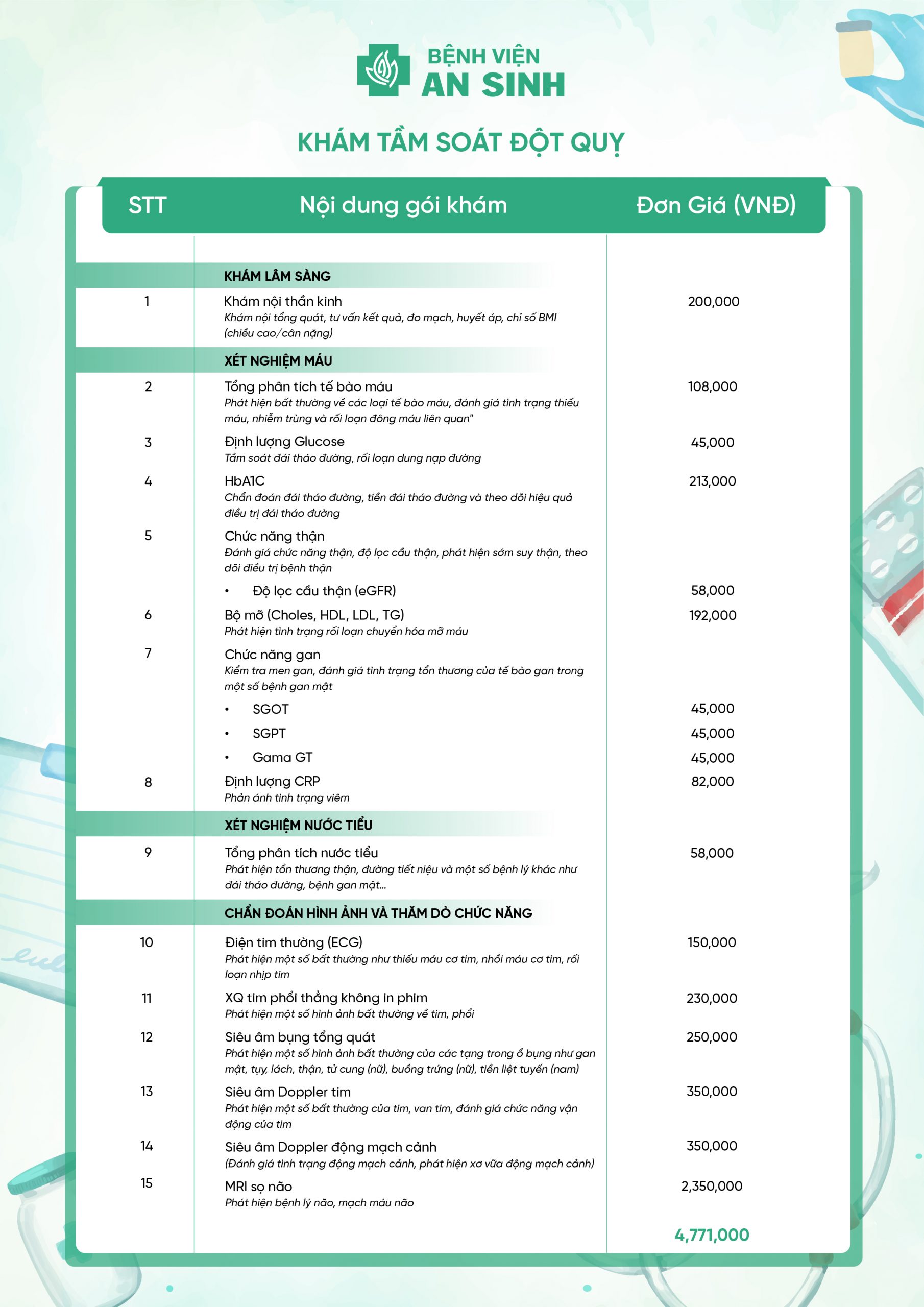 GÓI KHÁM TẦM SOÁT ĐỘT QUỴ