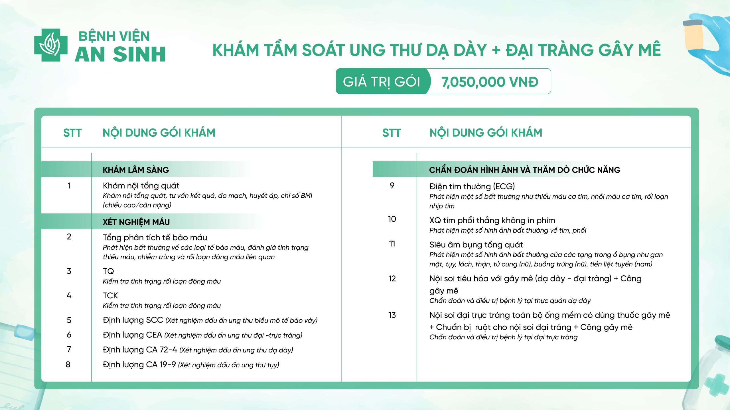 GÓI KHÁM TẦM SOÁT UNG THƯ DẠ DÀY & ĐẠI TRÀNG GÂY MÊ
