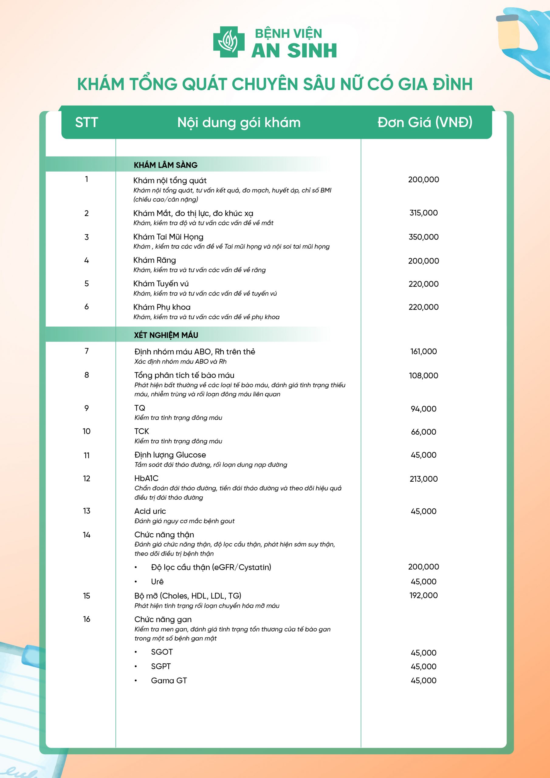 GÓI KHÁM TỔNG QUÁT CHUYÊN SÂU NỮ CÓ GIA ĐÌNH
