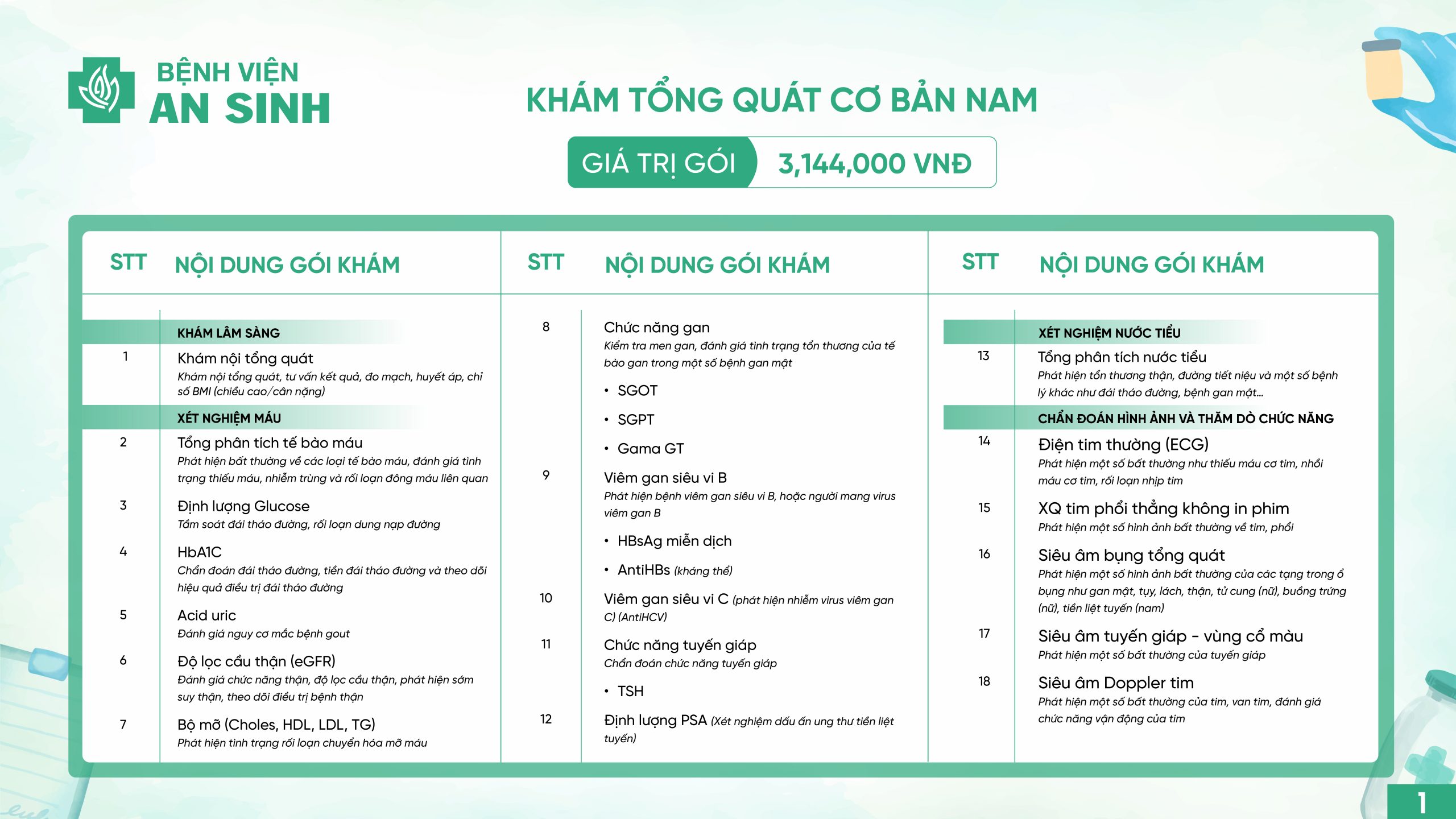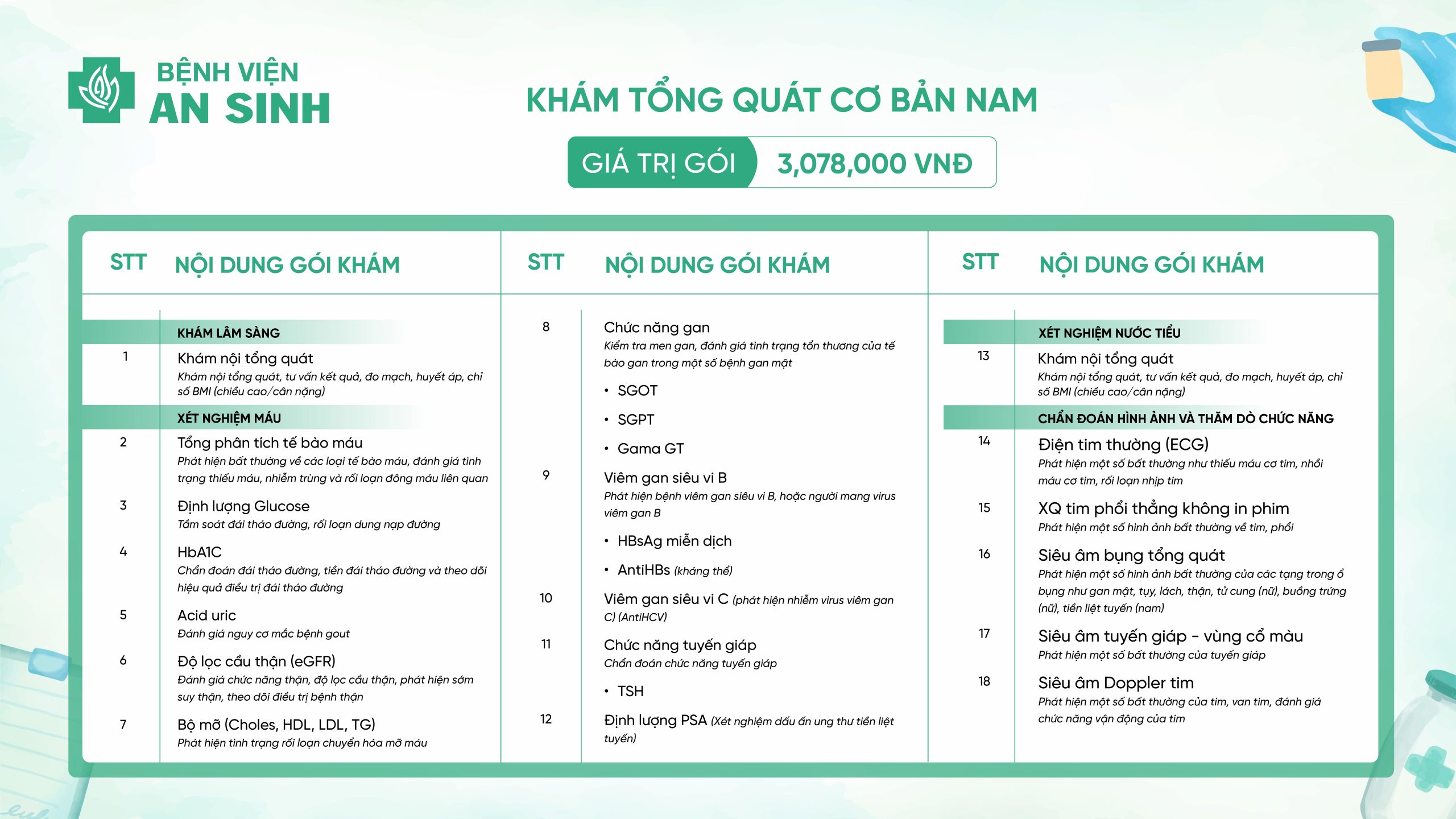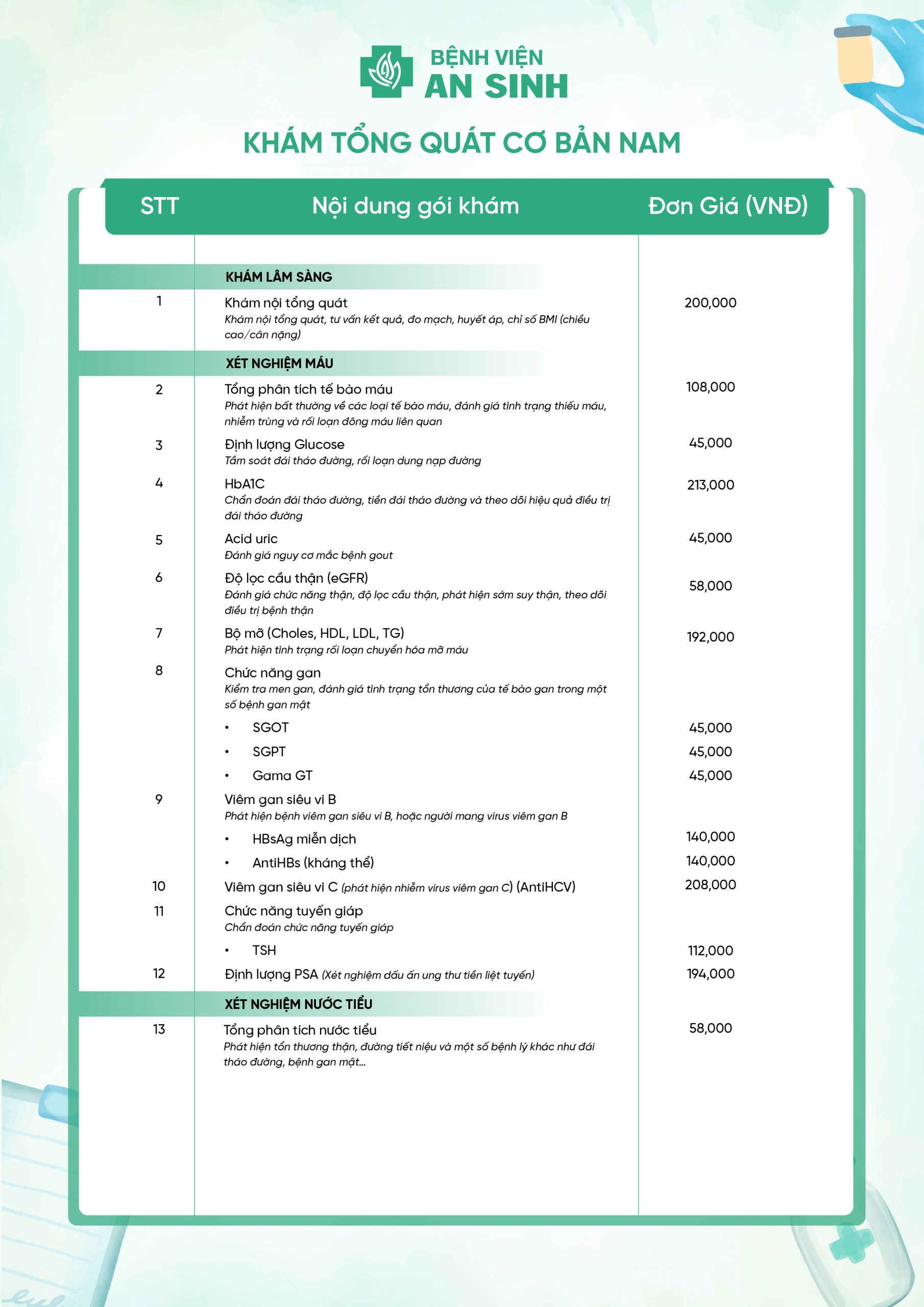 GÓI KHÁM TỔNG QUÁT CƠ BẢN NAM