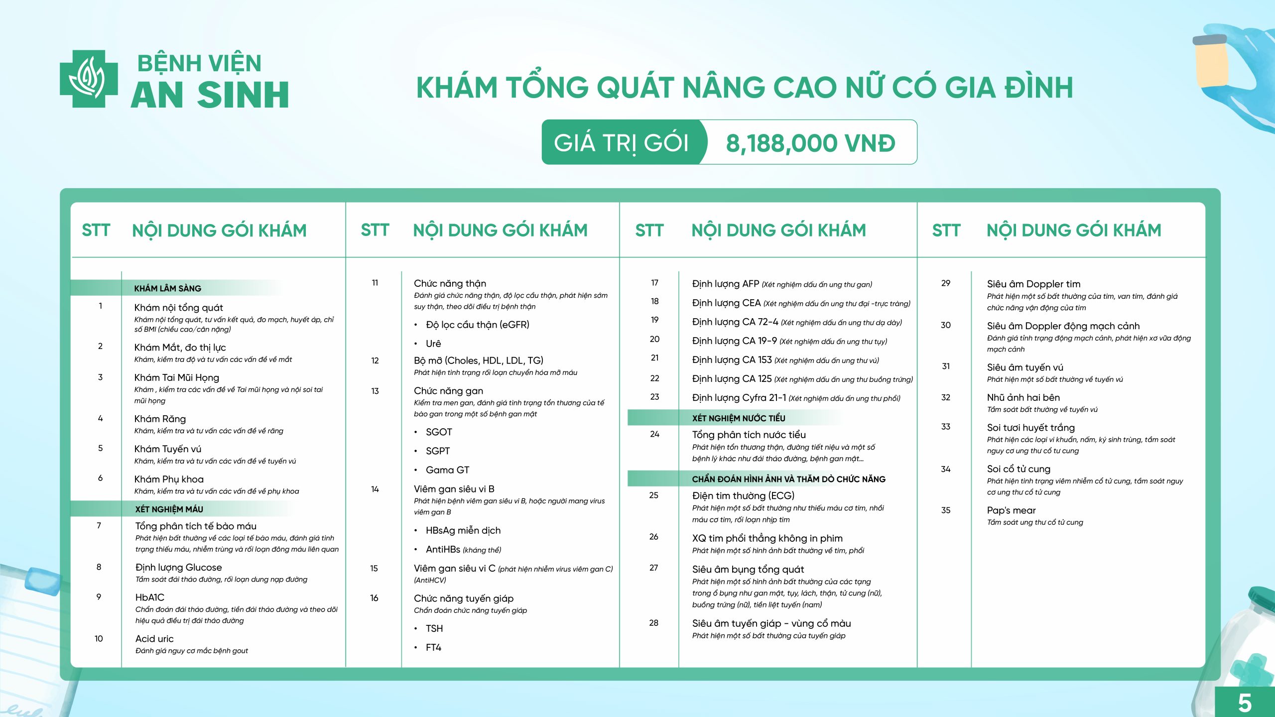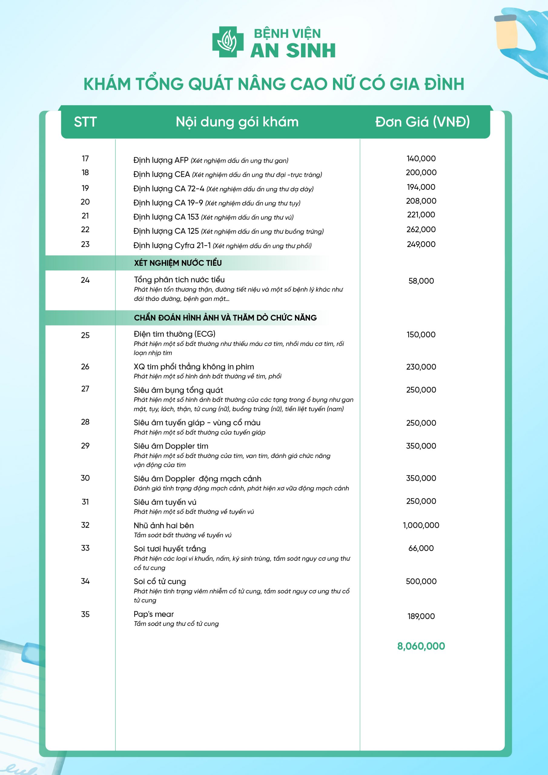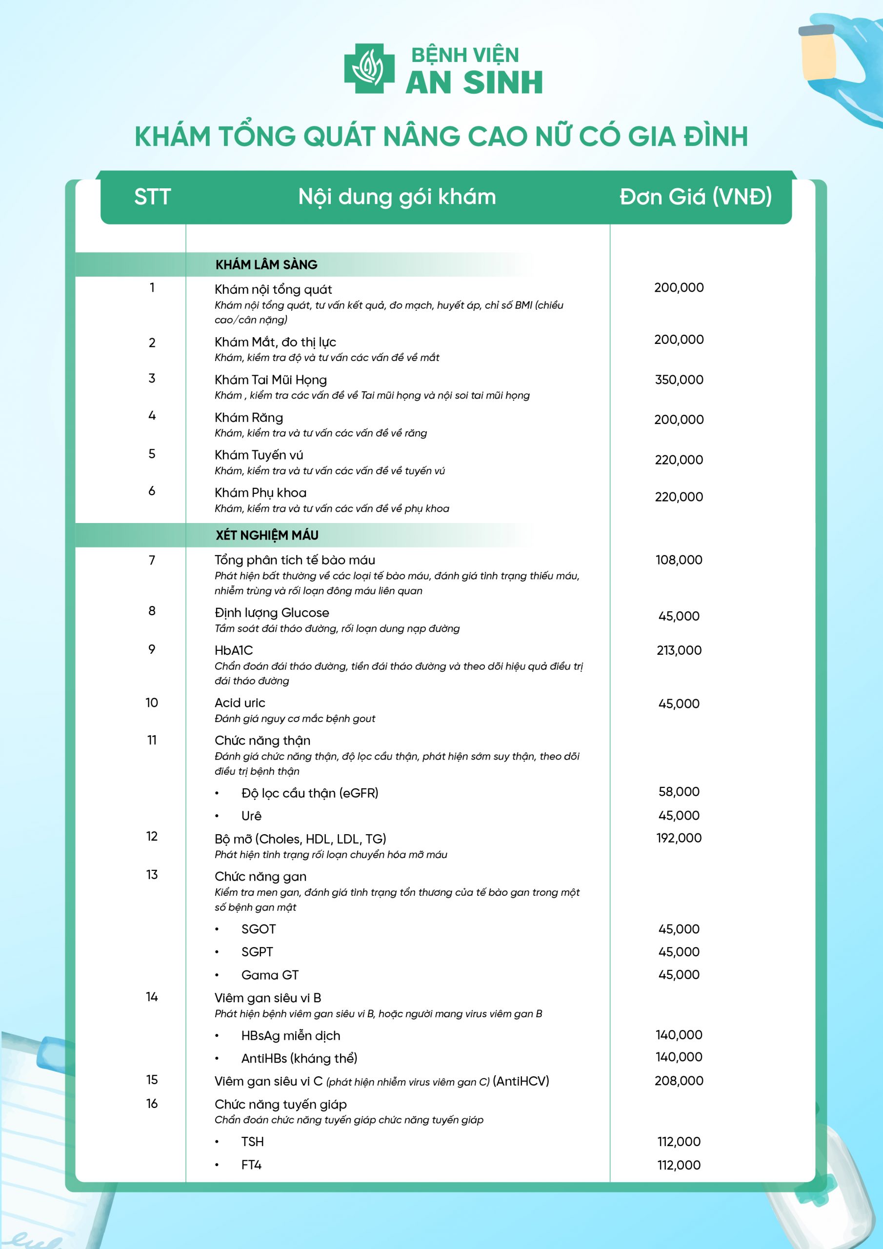 GÓI KHÁM TỔNG QUÁT NÂNG CAO NỮ CÓ GIA ĐÌNH