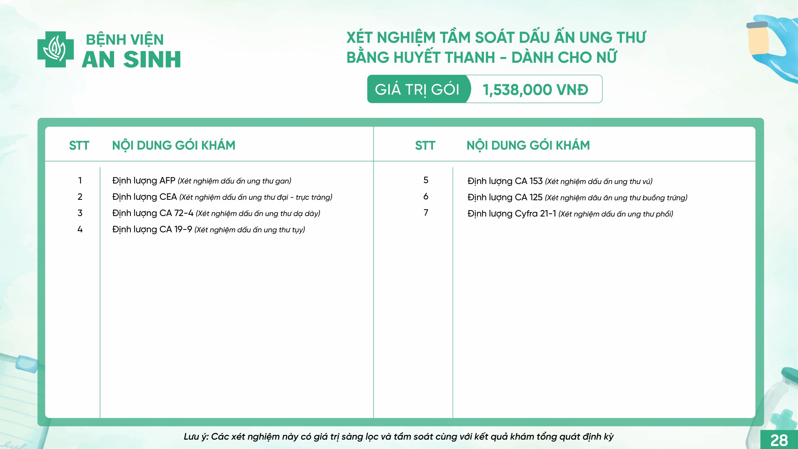XÉT NGHIỆM TẦM SOÁT DẤU ẤN UNG THƯ BẰNG HUYẾT THANH – DÀNH CHO NỮ