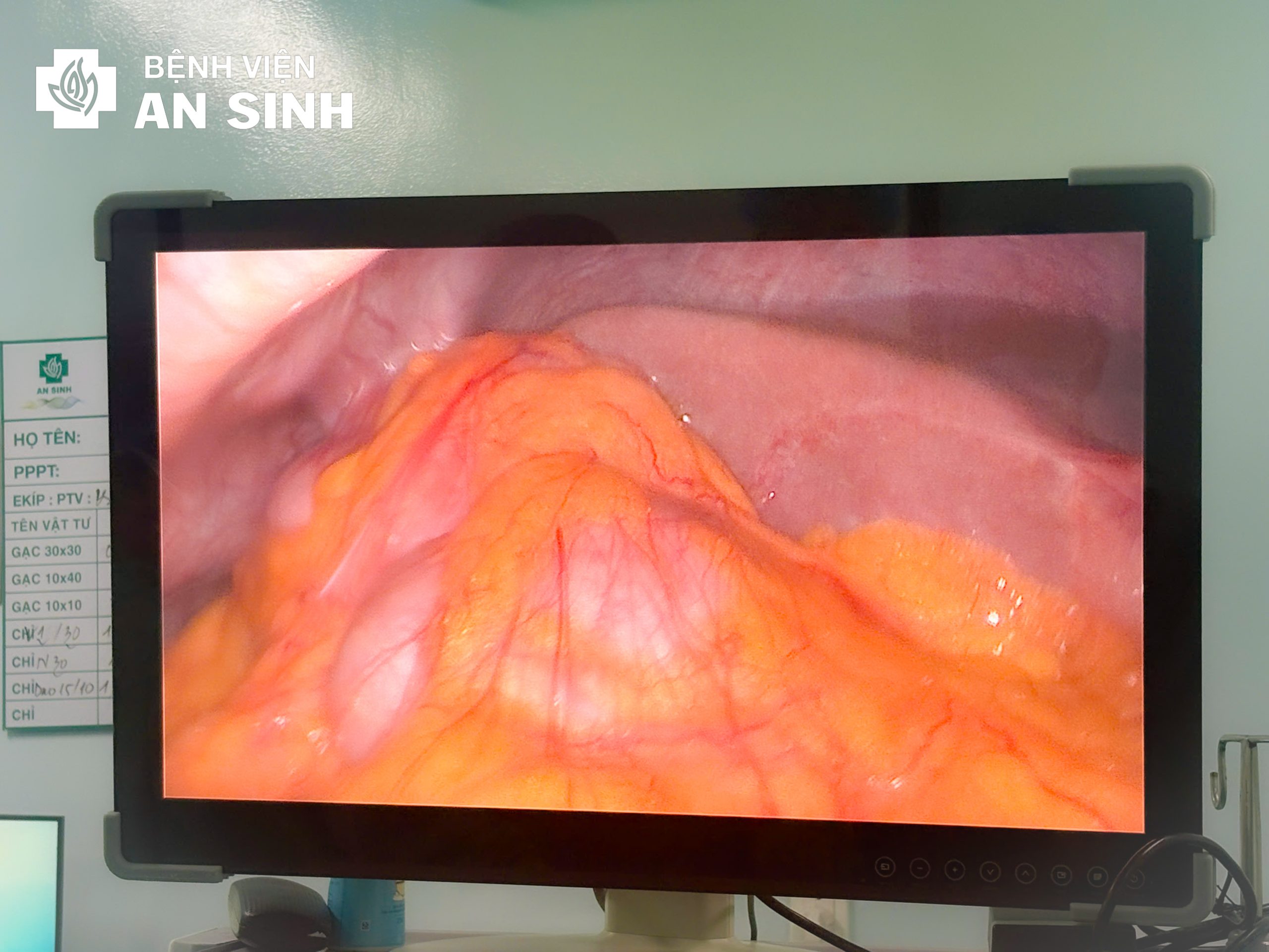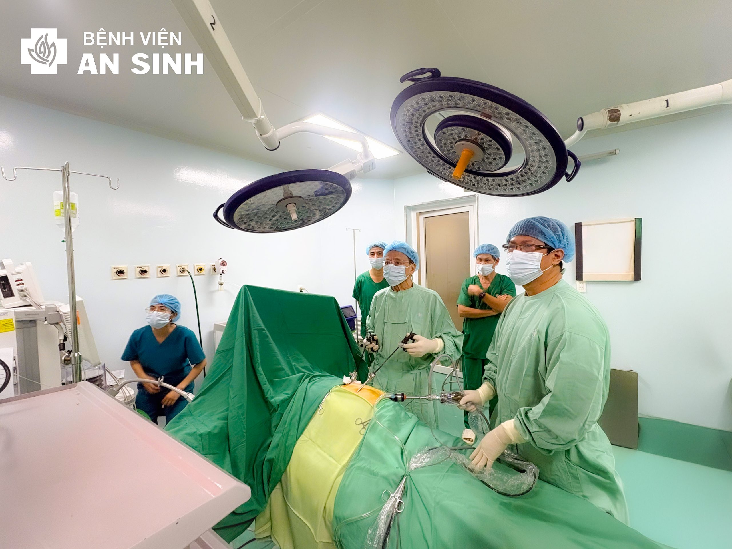 Đến trưa ngày 12/12/2025, Bác sĩ Chuyên khoa I Nguyễn Tự Đức – Trưởng khoa Gây mê Phẫu thuật, Bệnh viện Đa khoa An Sinh trực tiếp tiến hành gây mê cho bệnh nhân. Bác sĩ Chuyên khoa II Ngoại Tổng quát Hoàng Tuấn Việt – Trưởng khoa Ngoại Tổng hợp; Bác sĩ Chuyên khoa I Ngoại Tổng quát Võ Đức Tâm cùng ê-kíp phẫu thuật trực tiếp thực hiện ca mổ nội soi.